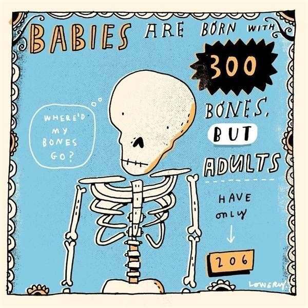 ▼成年人的骨頭會從305塊減少到206塊,因為在成長過程中,有些骨頭會合併。
