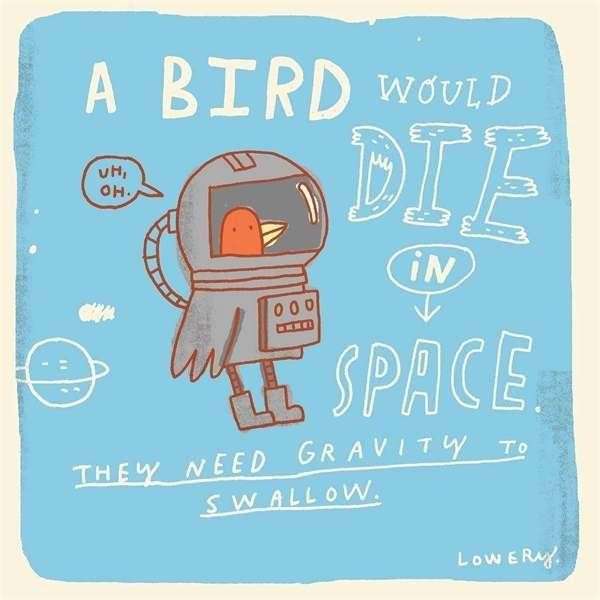 ▼鳥類是靠地心引力讓食物滑進食道裡的,所以鳥在太空中會餓死。