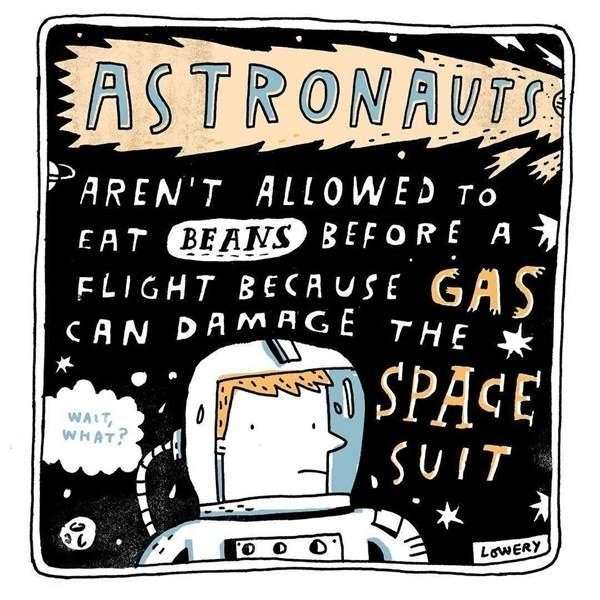 ▼太空人不允許吃豆類,因為會導致脹氣,放屁損壞太空衣就糟了。
