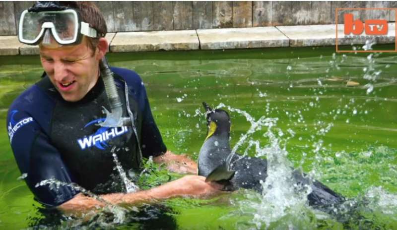 2018年06月22日企鵝一般都是熟知水性,但英國有一隻企鵝卻非常懼怕水,連訓練員都親自教導下水方式,牠卻完全不領情,還回瞪一眼,相當有個性啊!