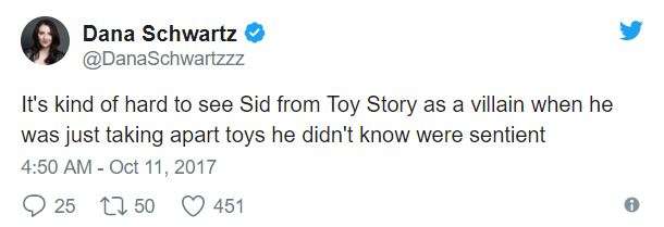 ▼「《玩具總動員》裡的阿薛就是個混蛋,他把玩具拆開了,雖然他不知道玩具有感情,但真的讓人很難接受。」