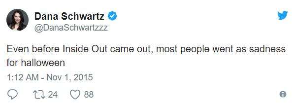 ▼「在《腦筋急轉彎》上映之前,萬聖節時就有很多人穿得像憂憂一樣。」