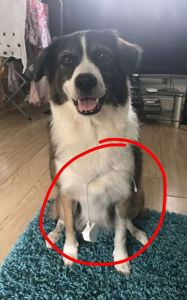 ▼擔任充電器「快遞」的汪星人。