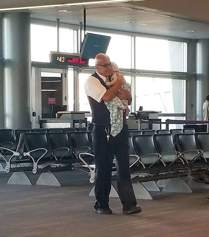 ▼機場工作人員幫疲憊的媽媽照顧小孩。