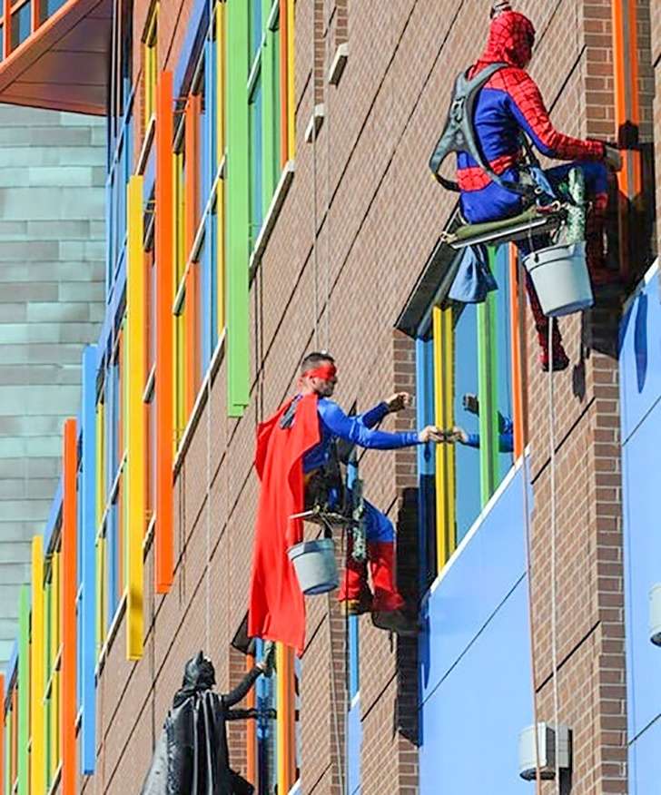 ▼兒童醫院的清潔工打扮成了超級英雄的模樣。