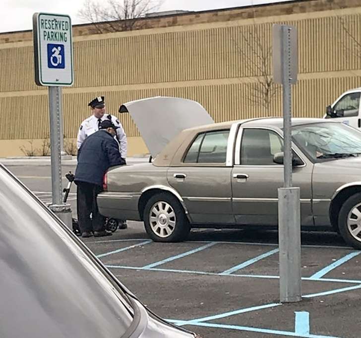 ▼每天購物中心的警衛都會幫94歲的老兵取出輪椅,讓他可以和朋友到用餐區喝咖啡。