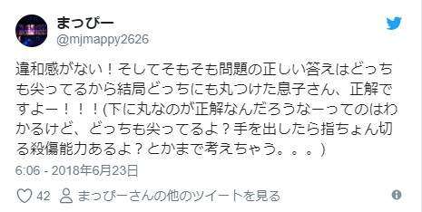 ▼其他網友也笑說:「如果答案是『兩個都是尖的』,那你兒子就答對了。」