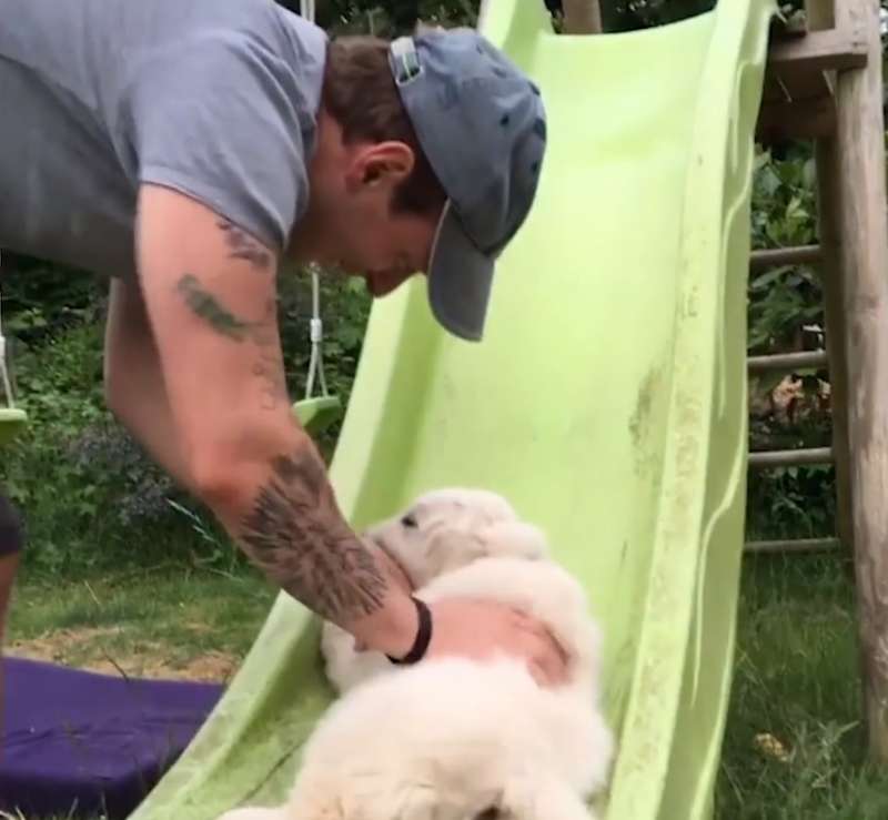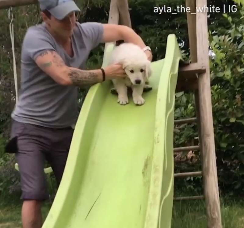 2018年06月29日小朋友都很喜歡溜滑梯,沒想到狗狗也一樣。最近,國外一名網友帶自家的小金金到公園玩,牠對溜滑梯情有獨鍾,自己上不去,還撒嬌要爸爸幫忙,和爸爸一起玩得超開心。