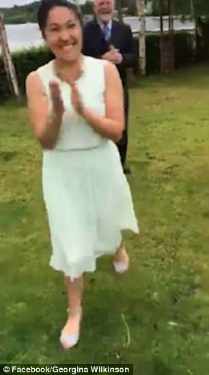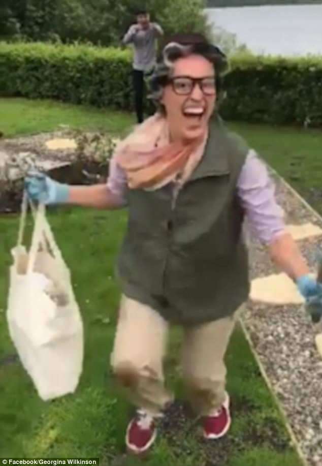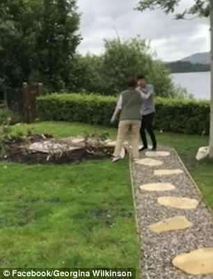 ▼在計劃執行當天,喬治娜先從美國飛了4000英哩(約6437公里)來到英國,偽裝成「園丁」參加當天舉行的一場受洗儀式。她事先和儀式上的攝影師串通好,要求他在拍照時讓德魯帶著假扮園丁的喬治娜離開。所以當德魯走進喬治娜時,她猛然一拍對方的肩膀說了一句:「換你當鬼了!」就轉頭大笑跑離現場,只剩下德魯嚇得呆愣在原地。