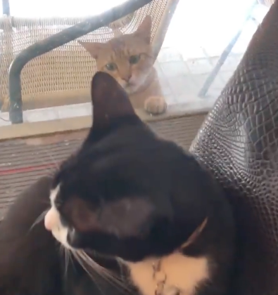 ▼看到窗外可憐巴巴的小虎斑,原po也忍不住發文「太可憐了吧」: