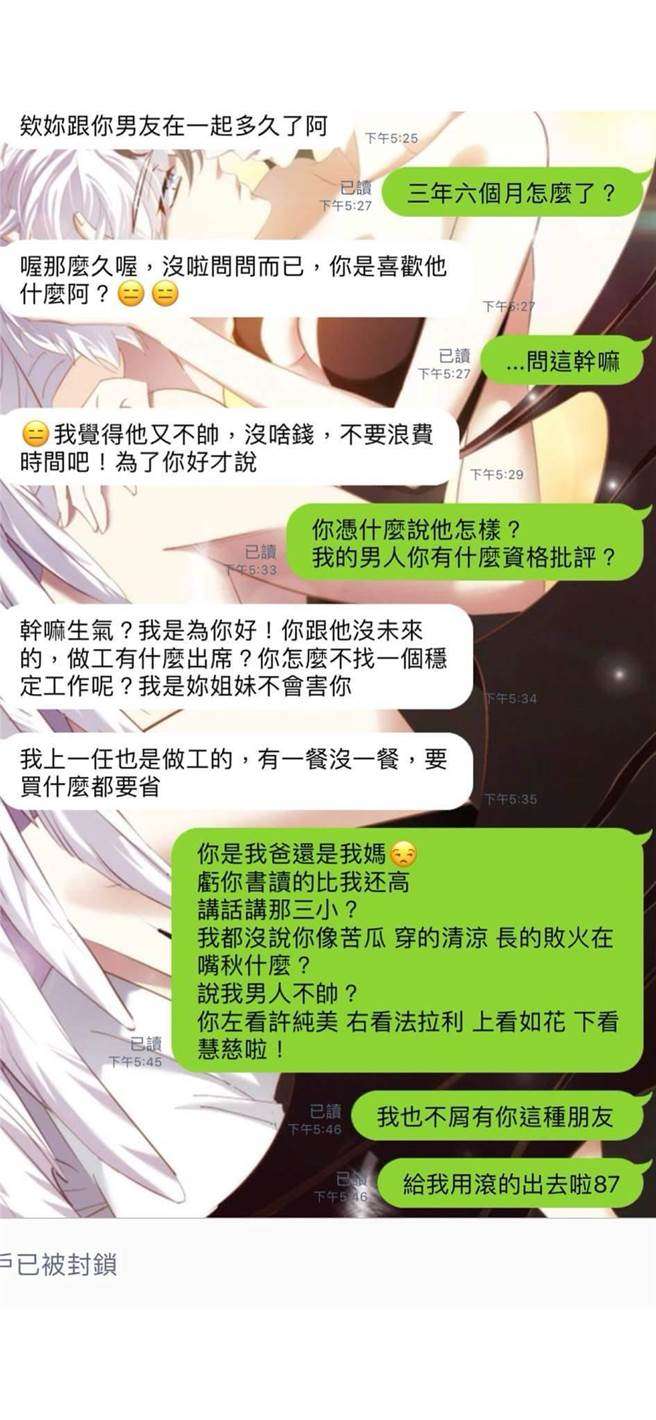 ▼當時這名閨蜜突然傳訊息來詢問原po:「欸你跟你男友在一起多久了阿?」原po回道:「3年6個月怎麼了?」結果對方竟然說:「我覺得他又不帥,沒啥錢,不要浪費時間吧!為了你好才說。你跟他沒未來的,做工有什麼出息?你怎麼不找一個穩定工作呢?」最後還解釋「我是妳姊妹不會害妳!」讓原po爆氣表示:「我愛的人妳再批評幾點?滿口姐妹姐妹聽了倒彈,真是一咖破掉麻布袋!」