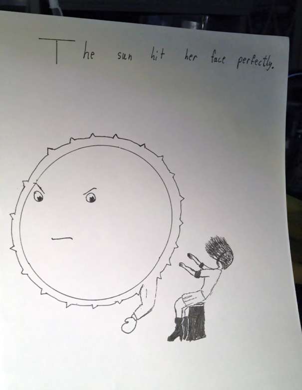 ▼「太陽直接擊中了她的臉。」