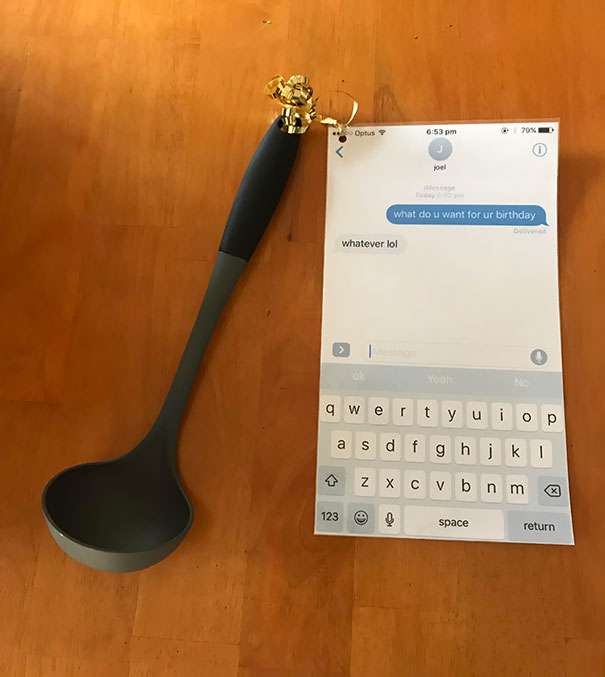 ▼當你詢問某人生日想收到什麼禮物,得到「隨便」的答覆時,記得還要截圖印出來!