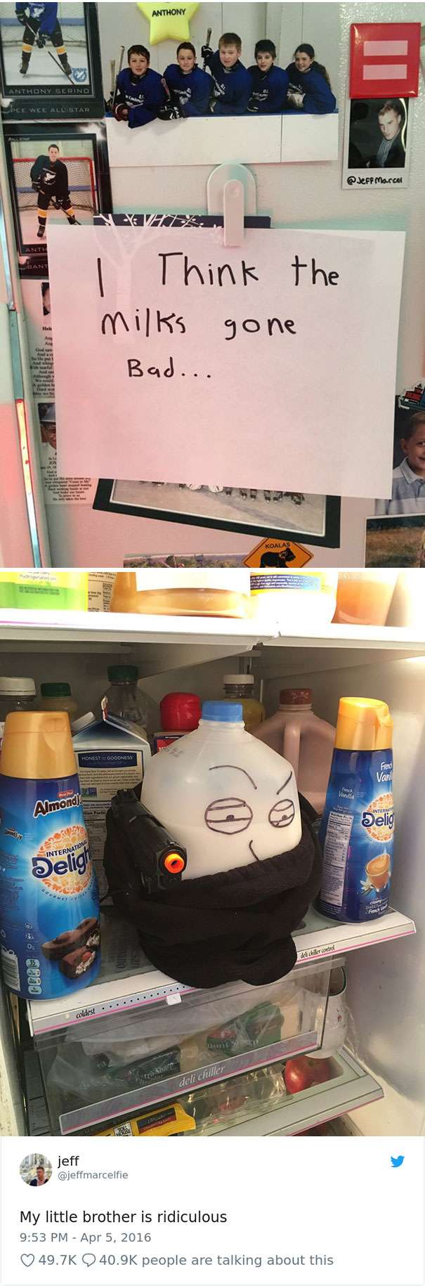 ▼弟弟留字條:「我想牛奶要變壞了…」