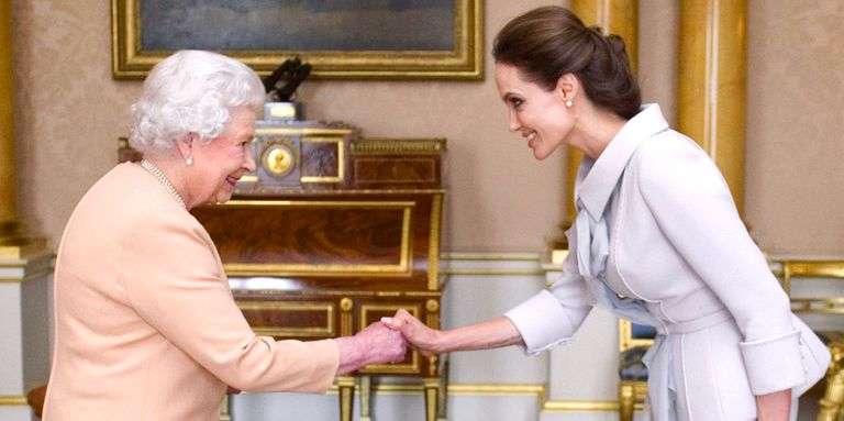 ▼​2014年時,英國女王伊莉莎白二世(Queen Elizabeth II)在白金漢宮接見了這位大明星,並親自為她頒授聖米迦勒及聖喬治勳章。裘莉不是英國人,無法被授予女爵士爵位,所以女王特別授予她榮譽女爵士的殊榮。
