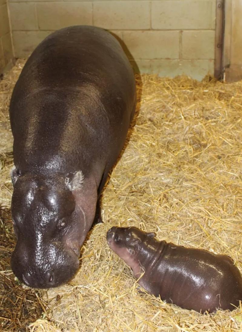 河馬媽媽重病也拼了命生下的寶寶 小河馬一出生就把大家療癒哭