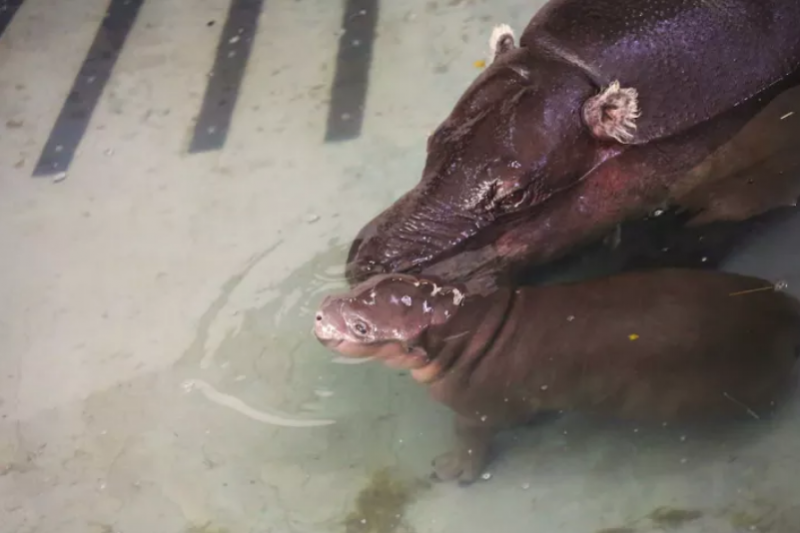 ▼因為瀕危物種繁育計劃中的雄性河馬稀缺,所以節禮日誕生的小河馬非常受到人們的歡迎和喜愛。