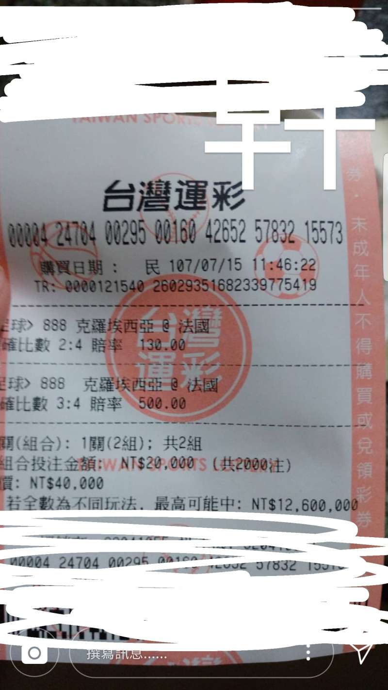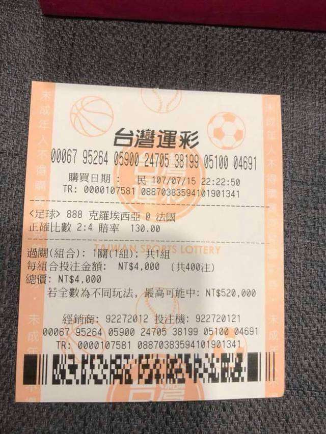 花2萬買運彩押「法國獲勝」 260萬獎金「有圖有真相」網友跪著讚嘆