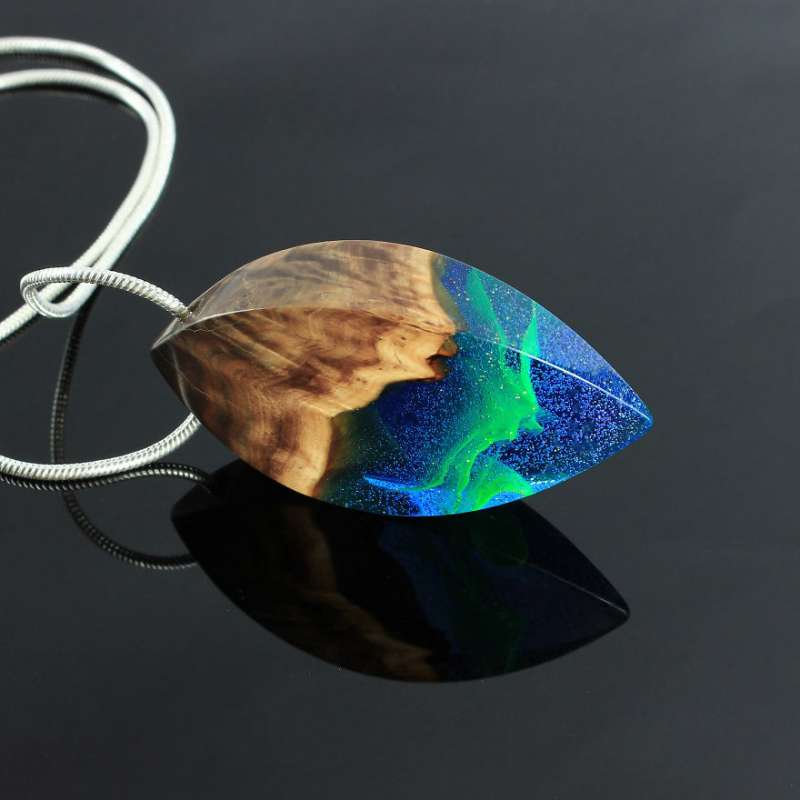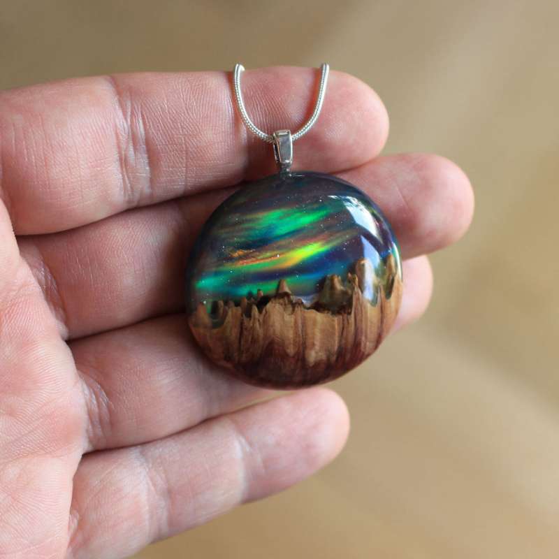 ▼這些美麗的吊墜、戒指就像被封印的微型世界,裡面有山脈、星系或極光。它們不如鑽石奢華,卻比鑽石更有內涵。