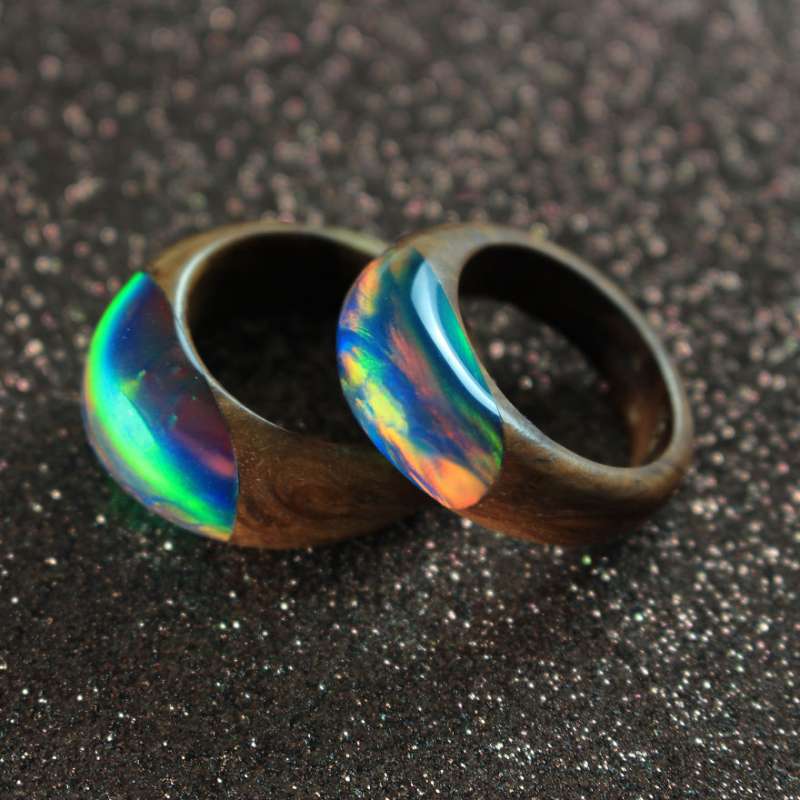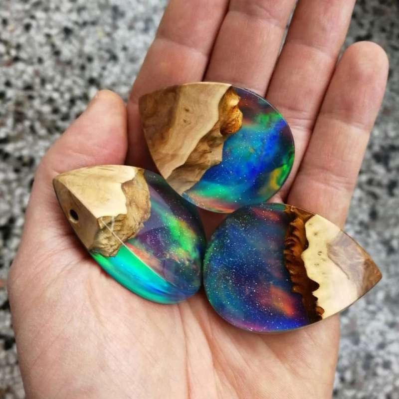 ▼最近,Miha愛上了蛋白石,他將這種材料加入自己的作品中,與樹脂、木材結合,製作成了漂亮的珠寶。