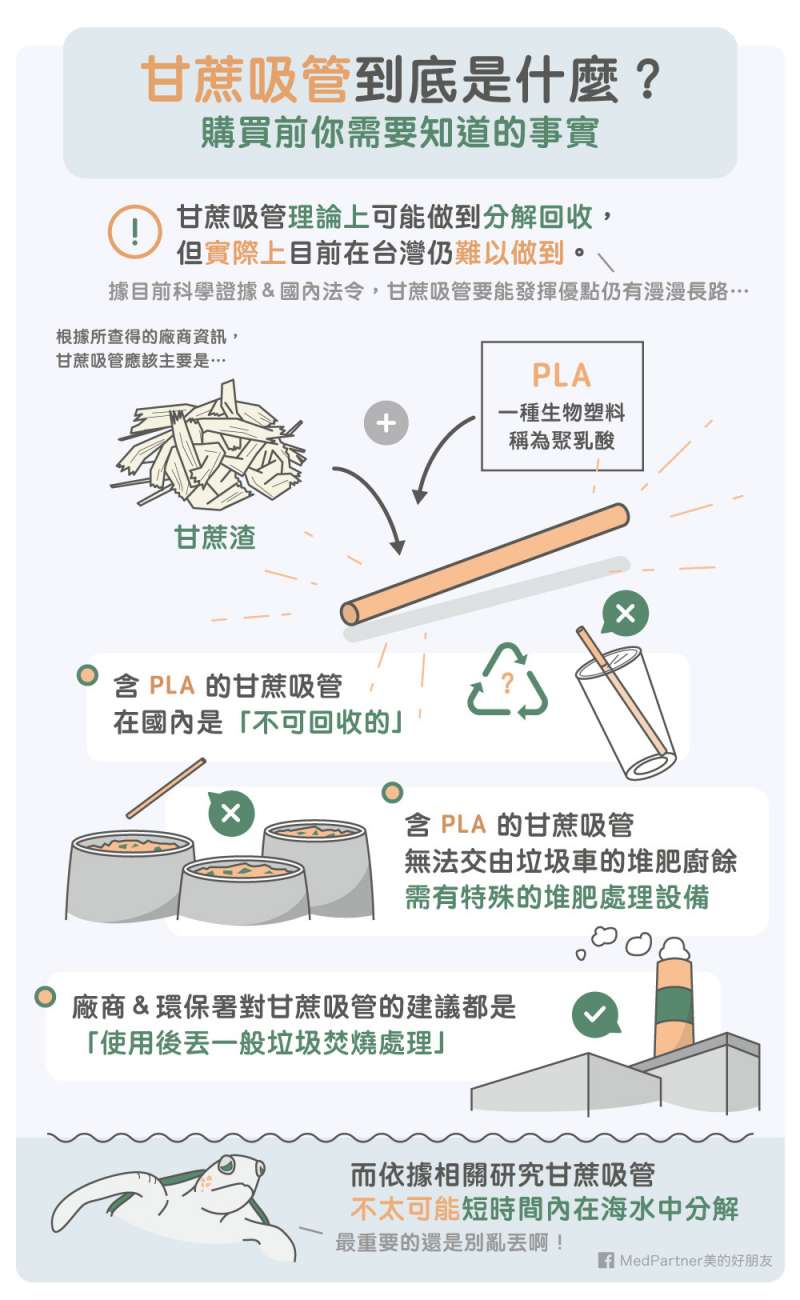 3. 目前無論是廠商或是環保署,對於使用甘蔗吸管的建議都是: #使用後丟一般垃圾焚燒處理