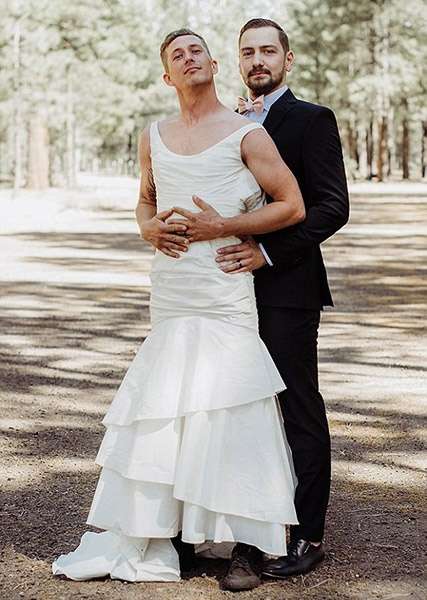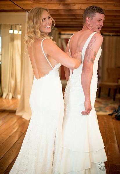 ▼原來這名25歲的調皮新娘海蒂(Heidi Zherelyev)眼見新郎瓦倫丁(Valentin Zherelyev)在婚禮上非常緊張,於是找來了30歲的哥哥埃里克(Eric Dodds)來冒充自己。