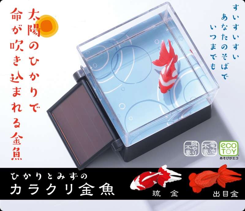 2018年07月24日日本公司TAKARA TOMY開發擬真版金魚,只要放入水中,不用飼料也不用電池,利用太陽能就能讓金魚在水中不斷迴轉繞圈。