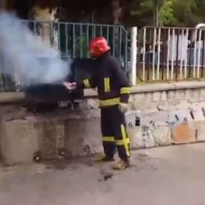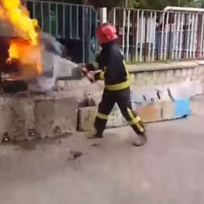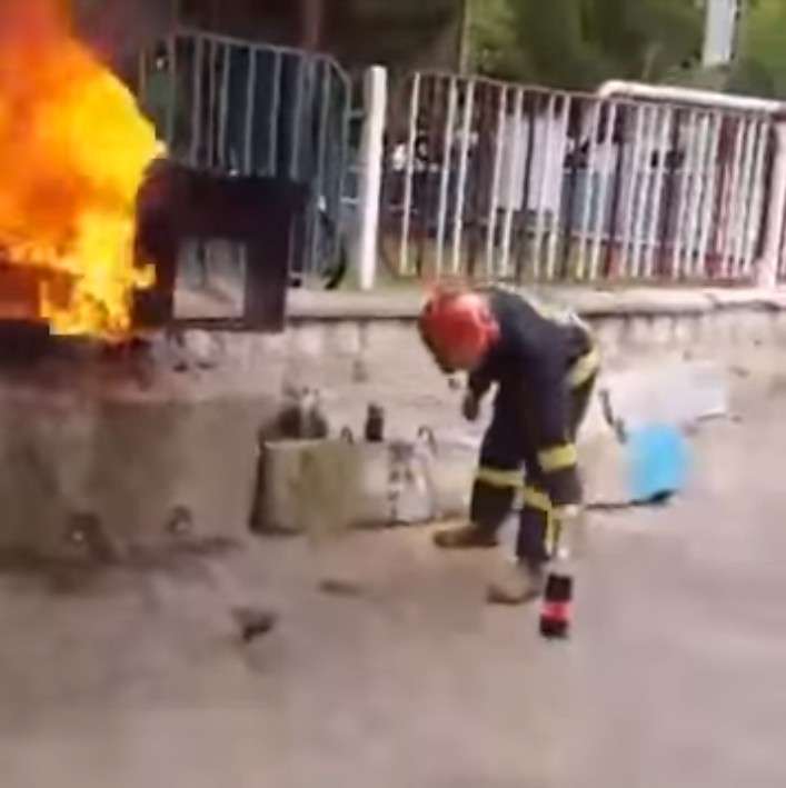 ▼在這段影片中可以看到,消防員拿起了地上的可樂,打開瓶蓋之後捂著瓶口猛搖數秒,接著將可樂朝著火源處狂噴。