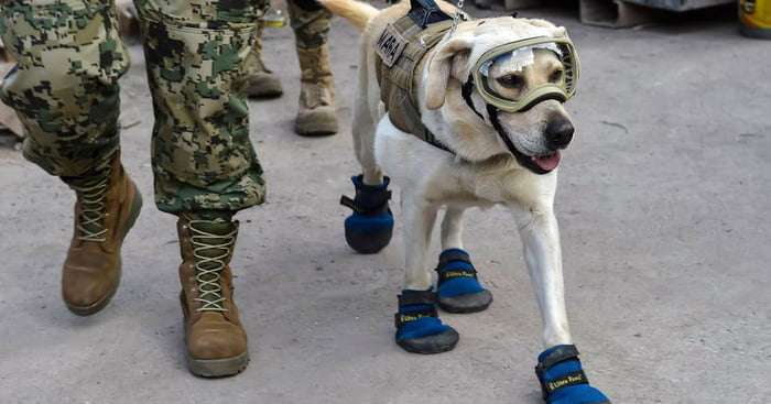 2018年07月24日去年9月,墨西哥中部發生7.1級強震,震後的景象非常悲慘。15隻搜救犬被派出,在一片殘垣斷壁中搜尋生還者。一隻叫Frida的8歲拉布拉多犬穿著為牠量身打造的鞋子和護目鏡,拯救了12人的生命,還找到了數十具遺體,成為了人們心中的英雄。