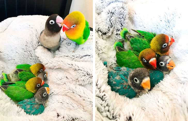 ▼主人給小鸚鵡找了個伴,牠們果然相愛了,還有了可愛的寶寶。