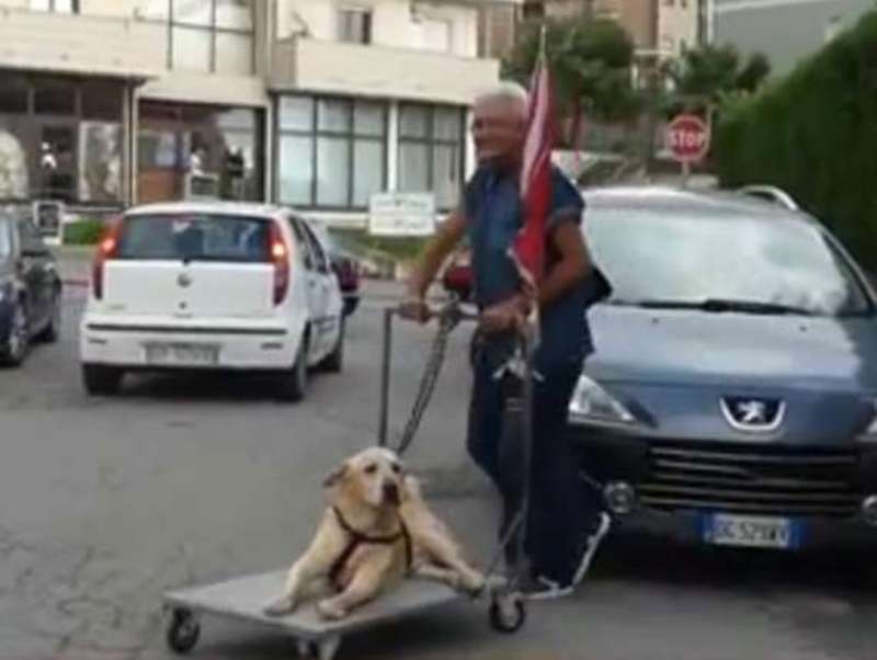 不久之前在義大利發生了一件感動人心的事,一名老人帶著他的狗狗在路上散步原本是一件普通不過的事,可是因為這隻狗狗的身體狀況和老主人的舉動,讓這段影片在網路上被瘋傳!