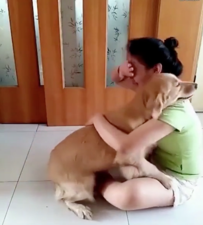 ▼主人大哭、敲頭牠都會很擔心,不斷用不同的方法安慰,直到主人恢復平靜才放心。