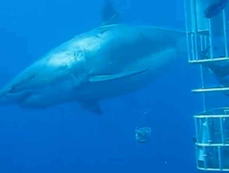 2018年07月27日神秘的海洋世界一直吸引著人們前去探索。墨西哥瓜達盧佩島是觀賞大白鯊的知名地點,每年都有很多潛水愛好者前來探險。2013年時,鯊魚研究專家Mauricio Hoyos Padilla和團隊人員來到這裡,他們在水下拍攝到了一隻長達6公尺的大白鯊。