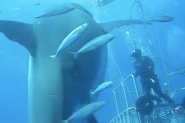 水下遇到6公尺「世界最巨鯊魚」 潛水員出籠跟牠面對面