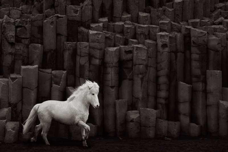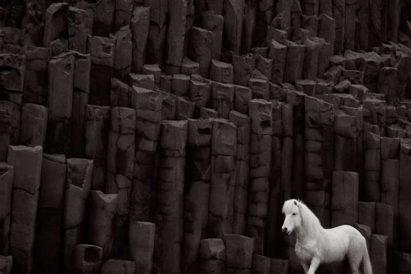 ▼德魯的攝影靈感來自北歐神話,也就是奧丁的坐騎斯雷普尼爾(Sleipnir),是一隻有八隻腳的神馬。由於冰島上的野馬同樣美得不可方物,過去一直有人認為牠們就是斯雷普尼爾的後裔。