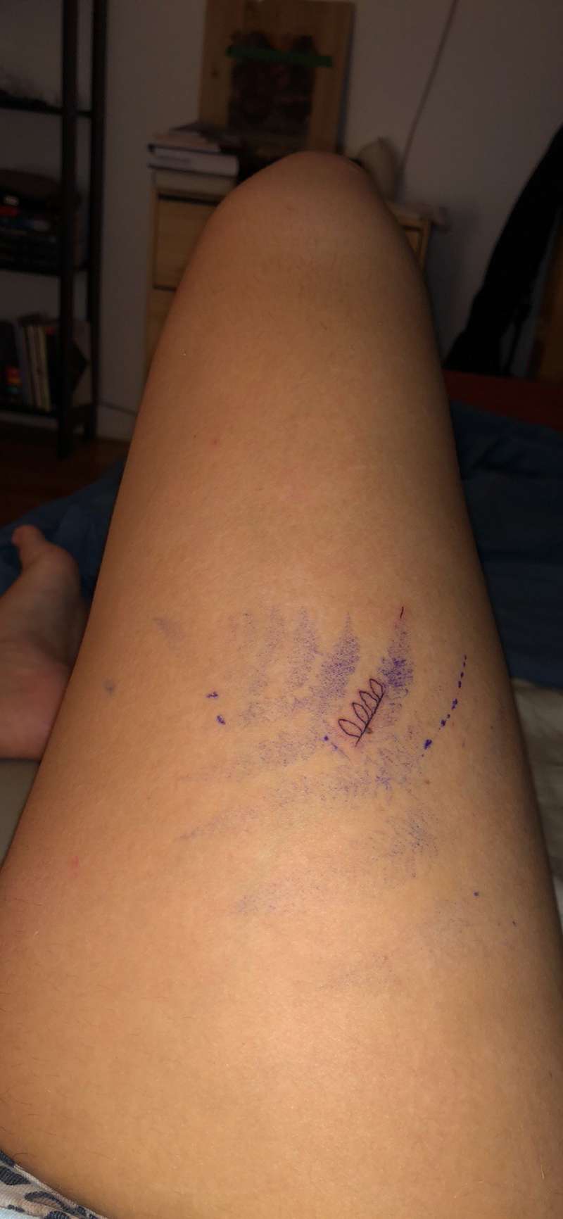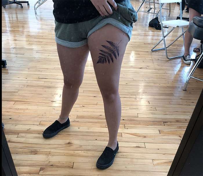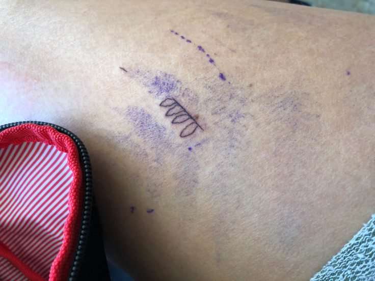 ▼當她將這段經歷po上網之後,有網友從她腿上的痕跡推斷出她應該是想刺一個樹葉的圖案,也有網友分享了自己同樣刺青的成果。