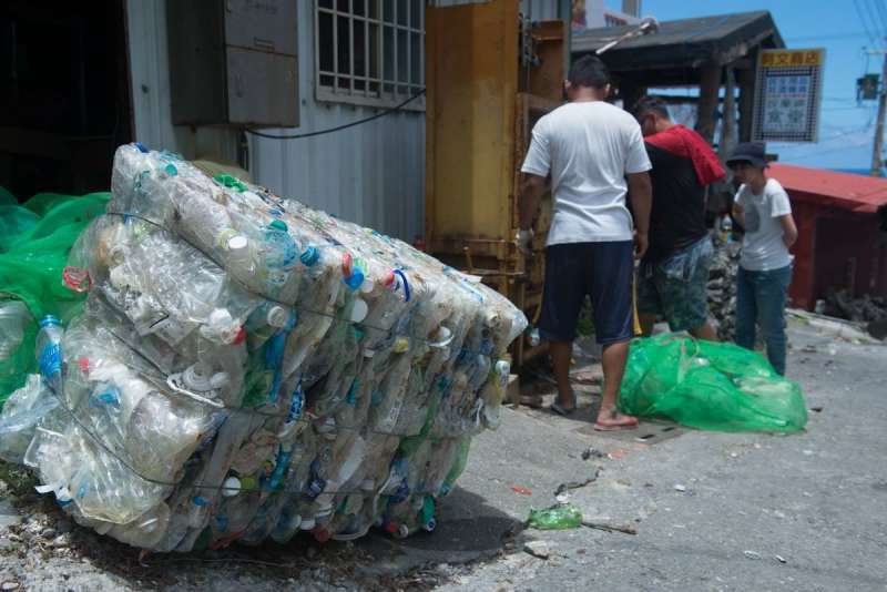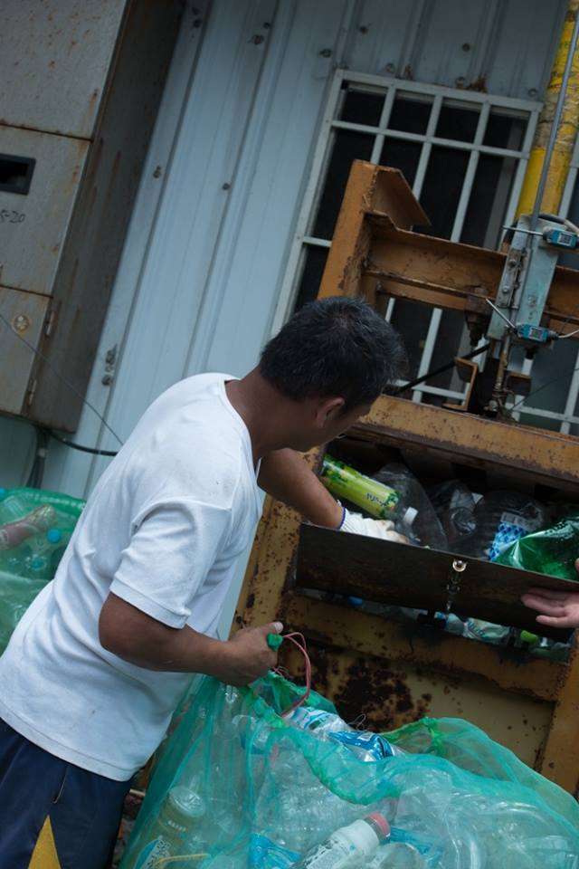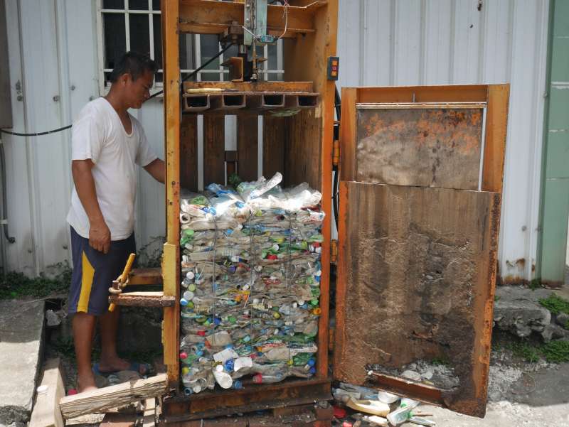 ▼2013年起,阿文放棄工作,獨自投入回收垃圾,又貸款購買壓縮機,將觀光季帶來的大量塑膠垃圾壓縮成磚,再運送回台灣,多年來族人問起,他都說「賺大錢」。