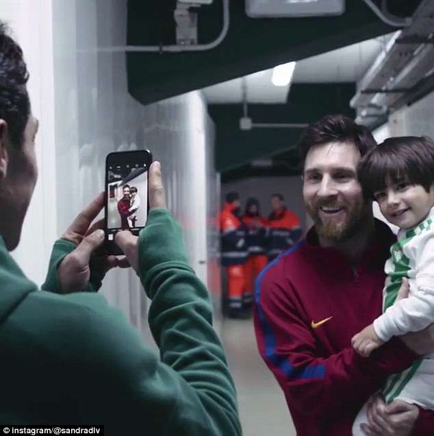 ▼今年1月,梅西所屬的巴塞隆納以5:0擊敗皇家貝提斯。賽後貝提斯中場瓜達多(Andres Guardado)抱著兒子到巴塞隆納的休息室外,見偶像梅西。