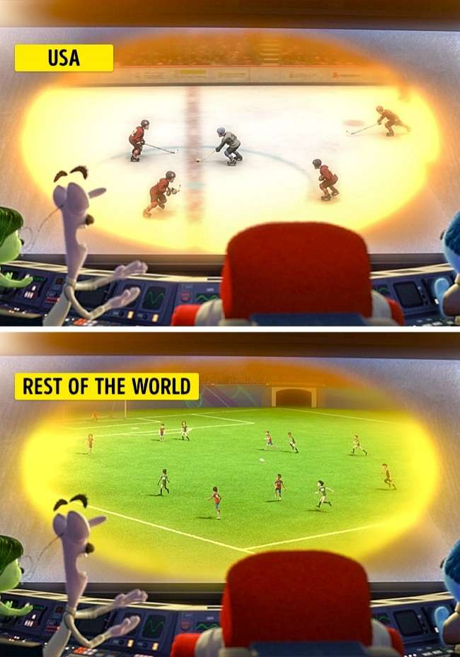 ▼《腦筋急轉彎》:萊莉爸爸在放空時,腦中想像的是冰球比賽,國際版本則替換成了更普及的足球。