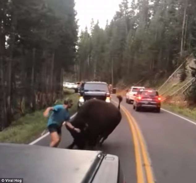 野牛是一種非常危險的動物。今年6月,一名叫Kim Hancock的59歲遊客沿路行走時,因為距離野牛太近,惹怒了牠們,被野牛頂傷。今年5月,一名小女孩轉彎時被野牛撞倒,腿部受傷。黃石國家公園的動物都是野生的,雖然牠們看起來溫馴,但充滿野性,隨意挑釁的話,後果不堪設想。