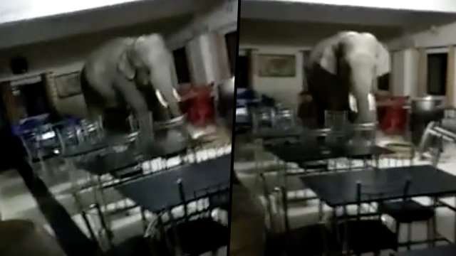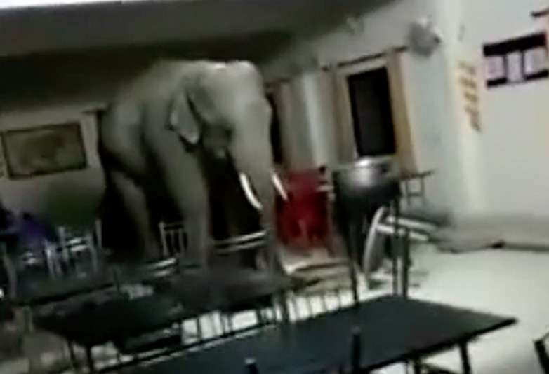 忽有龐然大物! 印度軍隊基地驚見大象「逛大街找食物」