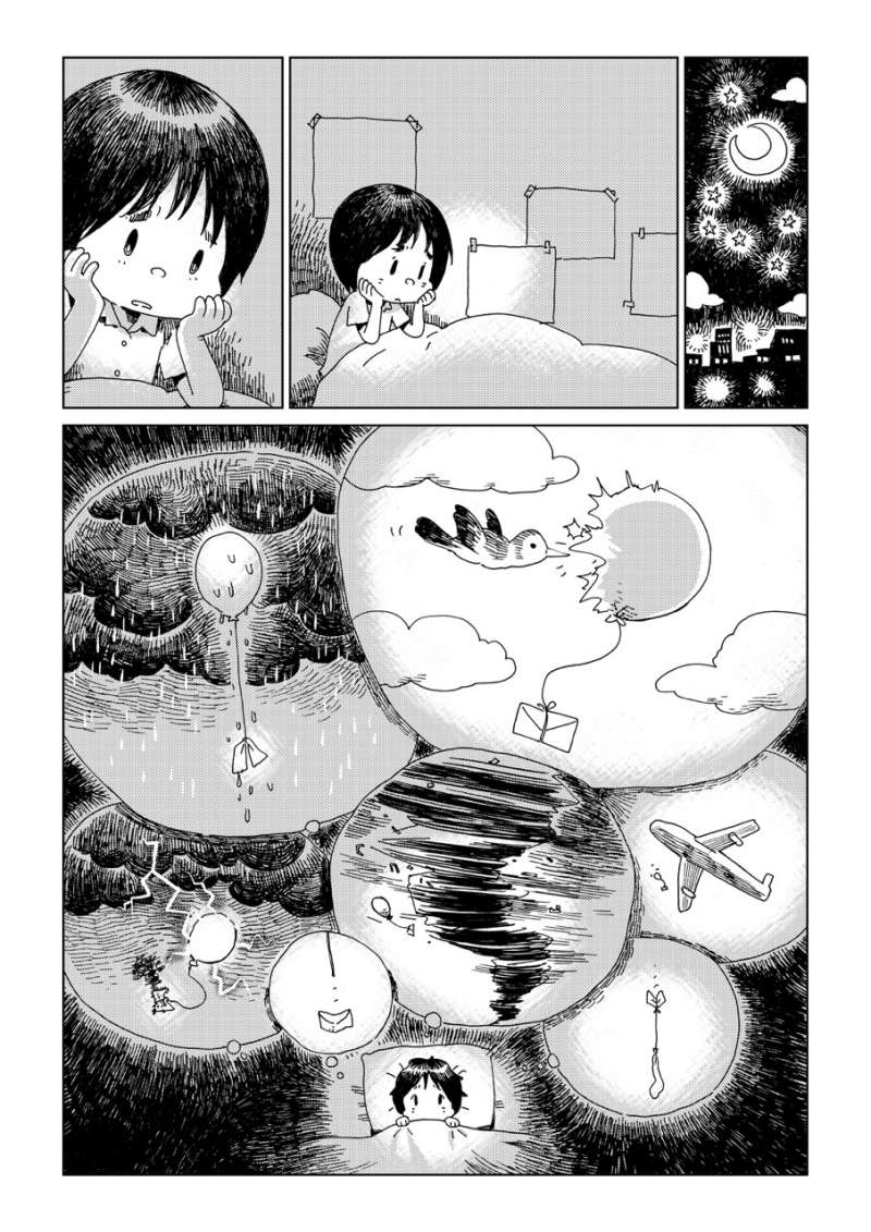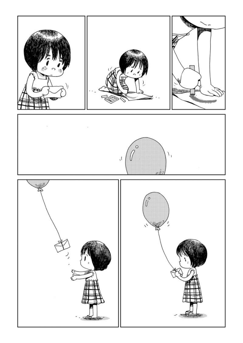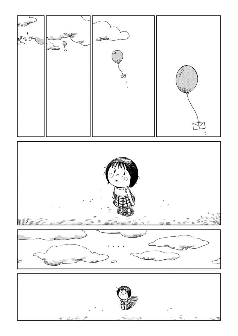 ▼信被氣球帶到了空中,越飄越遠,小女孩呆呆看著天空,希望能夠收到好朋友的回信。