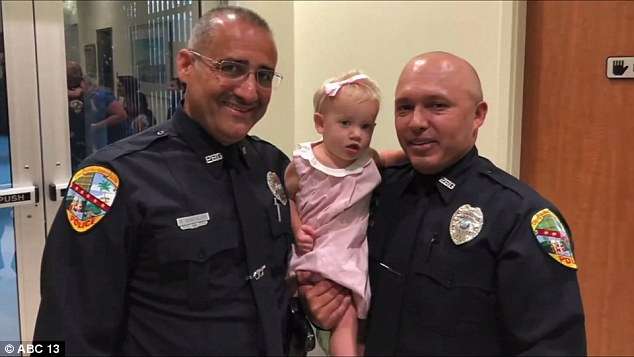 ▼Ana大叫求助,正在餐廳中用餐的兩名員警,Robert Ayala和Rafael Guadalupe趕了過去。Robert從Ana手中接過Lucia,將她放在大腿上,臉朝下大力拍打背部,Rafael則打電話求助。在兩位員警的努力下,Lucia轉危為安。醫護人員趕到時,她已經沒事了,還想接著吃午餐呢。