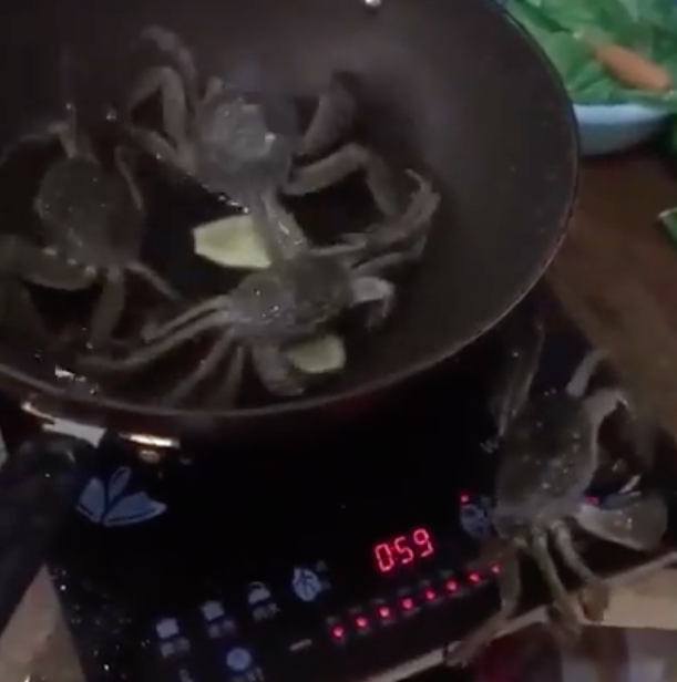 螃蟹爬出鍋「關掉電源」勇救同伴 網友:不忍心吃牠了