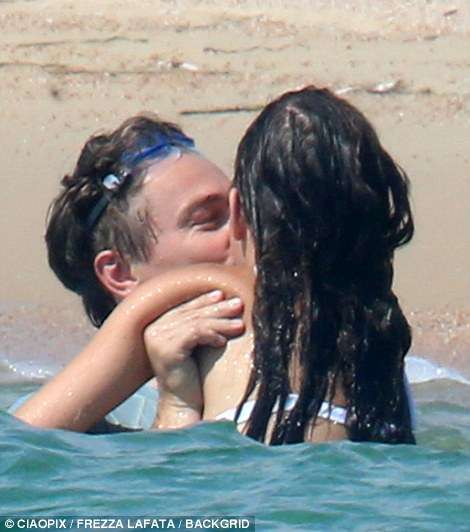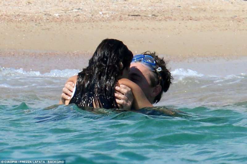▼李奧納多一點也不在乎旁人眼光,還將卡米拉從水中抬起。
