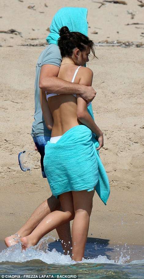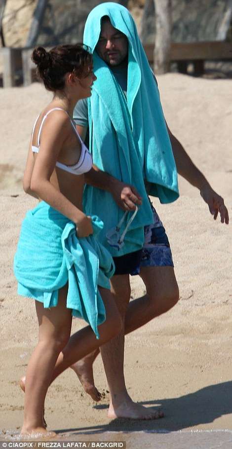 ▼當他們沿著海岸線漫步時,李奧納多還用手環抱住女友。