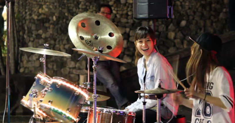 台灣2大女神鼓手在街頭合體表演 互看萌笑展現超強默契收服路人