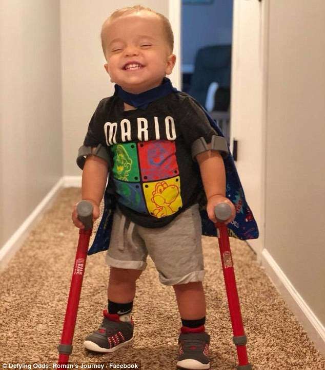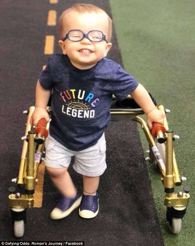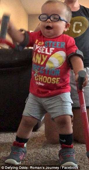 ▼手術非常成功,Roman出生後,堅持用助行器和拐杖練習走路。雖然他走得很蹣跚,還經常跌倒,但這對於患有脊柱裂的孩子來說,已經是不可思議的奇蹟了。