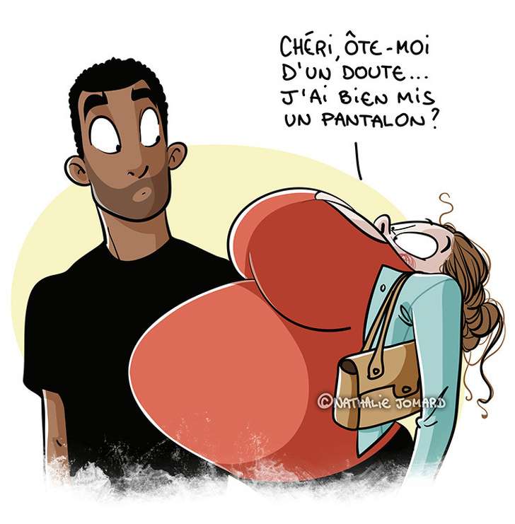 ▼懷孕時肚子太大,看不到下半身:「親愛的,告訴我我穿著褲子。」