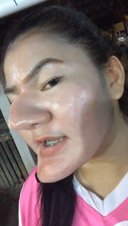 ▼一段泰國女子整形後的自拍影片在網路上瘋傳,影片中這名女子正在開心的炫耀自己整形後的鼻子和下巴。